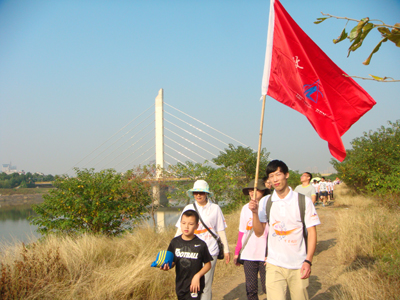 公司毅行队伍行走在康济桥上