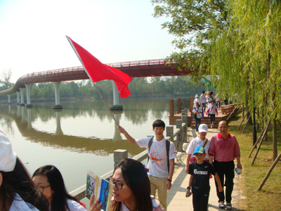公司毅行队伍经过假日公园