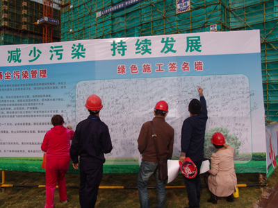 会议第二项是签订建筑施工扬尘防治责任书。我公司多湖横塘沿社区搬迁安置房项目监理工程总监童健波当场签订了建筑施工扬尘防治责任书。