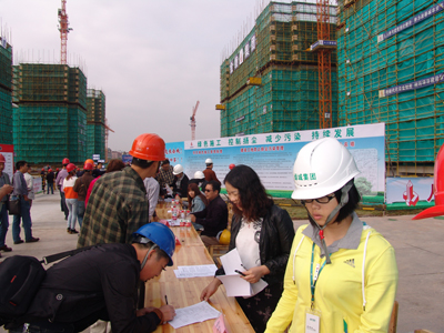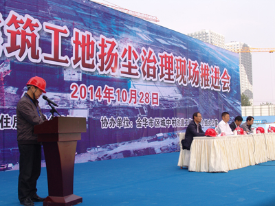 10月28日上午,金华市建筑工地扬尘治理现场推进会在多湖横塘沿社区搬迁安置房一期工地举行,有全市建设、监理、施工单位600多人参加了会议,我公司总工张宝玉和市区二环路范围内在建工程项目经理总监等20余人参加了此次现场观摩会。
