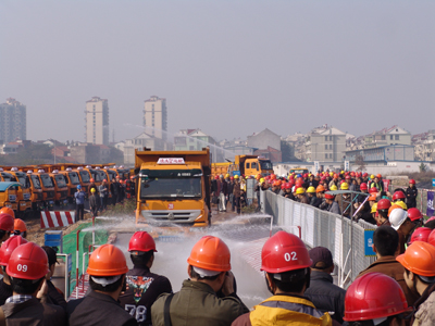 11月14日上午,金华市建设工程土石方开挖阶段扬尘控制现场推进会在欧源晓郡花园建设工地举行,有全市建设、监理、施工单位500多人参加了会议,我公司总工张宝玉和部分市内在建工程项目经理总监参加了此次现场观摩会。