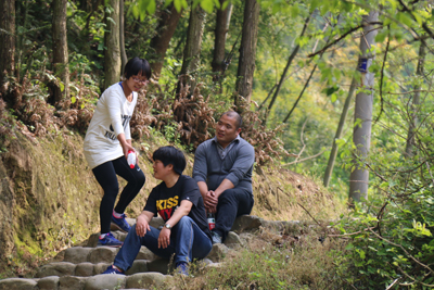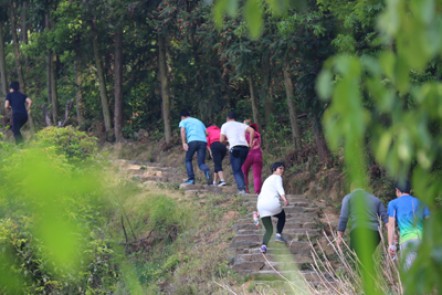 比赛在枊湖社区书记一声令下后,从半山村霞客古道开始到羊甲山村为止,我公司有5人参加了登山活动。古道以保存完好的石阶为主,两边竹木葱茏,清幽宜人。拾阶而上,或平路,或缓坡,如不比赛,人并不觉得很累。一路上,有溪流、有鸟鸣、有山花、有习习山风.......。大自然真是美妙无比,置身其中,乃心旷神怡!