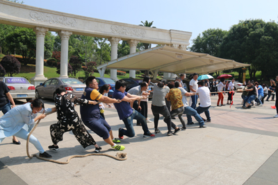 该次共建活动有集体拔河和寻找彩蛋2个项目。集体拔河共有6家共建单位参加,每队4男4女,通过抽签进行每组3局2胜对抗赛,比出前3名,然后进行循环赛。通过几轮的循环赛,最终致远队获得了第二名的好成绩。比赛中致远团队不畏强手,队员间互相鼓励,互相鼓劲,真正体现了敢打敢拼的精神。拔河比赛结束后,全体人员参加寻找彩蛋活动。社区人员在公园一小路围起的草坪树丛中安放了60枚彩蛋,彩蛋中放置了得奖的信息。随着一声令下,大家争先恐后跑向草丛树根寻找起来,有找到的,惊喜连连,没找到的,认真穿插寻觅;有眼尖的,找了许多,并与没找到的人共同分享,使大家在得彩蛋喜庆的彩头互动中增进了友谊,加深了感情。