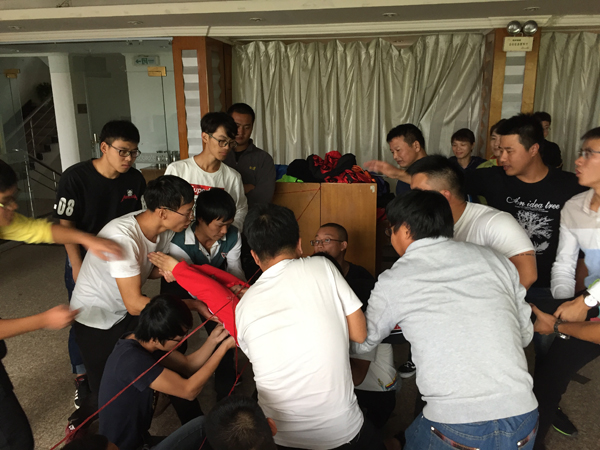 两天的拓展活动,队员们经过 “呼吸的力量”、“极速60秒” 识图排序、“四项接力”、蒙眼“排列组合”等团队竞赛项目活动,体验到了团队完成一个项目时个人与团队在组织、沟通、协调、配合等方面的重要性。其间,全体队员还进行了环鹿湖晨跑活动,在黄大仙祖宫前体会了道家哲学的智慧,在鹿田水库大坝上进行了伸展运动和呐喊的吐故纳新活动。特别值得一提的是培训最后一个“电网逃生”活动项目,这次活动不分团队,全体队员混合一起参与,要求一小时内全体队员通过一个40*40公分的“电网口”,任何人任何部位不能触碰“电网”,否则全部重来。在经过多次尝试失败后,许多人都感觉这是不可能完成的一项任务想选择放弃时,最终还是坚持要求挑战到底。通过集思广益,认真分析问题的所在,找出失败关键点,改进方法,把具体任务措施分配落实到位,做细做实每个人的工作。经过近一小时的配合协作,终于一次性把40余人从电网口的一边安全输送到另一边,圆满顺利完成了该项目要求的任务。此时,全体队员感到从未有过的开心和激动,活动室内响起一片欢呼声。从这个项目活动中,大家深切感受到:有时我们为了实现同一个目标,在坚定自己信心时,更要信任合作伙伴的配合,虽然实现目标过程有时很艰难,甚至当时觉得是不可能完成的任务,但只要我们目标明确,相信自己,齐心协力,不断努力,不断变通方法,问题也许没有我们想象的那么可怕,往往坚持就是胜利。