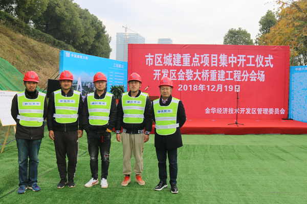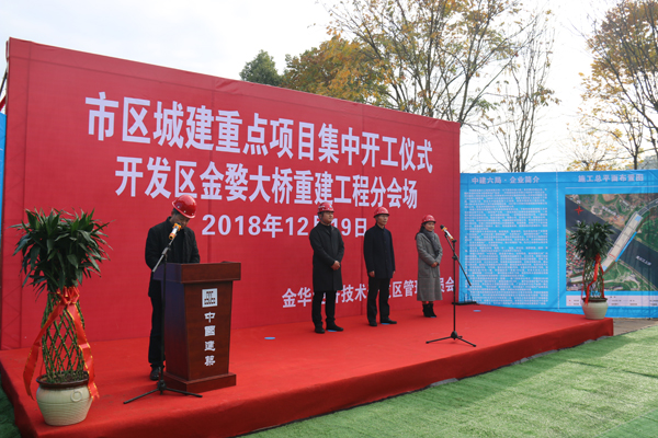 2018年12月19日上午,市区城建重点项目集中开工仪式在主会场婺城区雅畈镇六部寺金华市固废处置中心举行,市委书记陈龙出席仪式并宣布项目集中开工,市委副书记、市长尹学群主持仪式。集中开工分会场金婺大桥重建项目工程开工仪式在月亮湾公园同时举行,开发区党工委委员、管委会副主任应晓亮宣布了金婺大桥重建项目工程正式开工!我公司在两个项目上都派出了强大阵容参加了开工仪式。